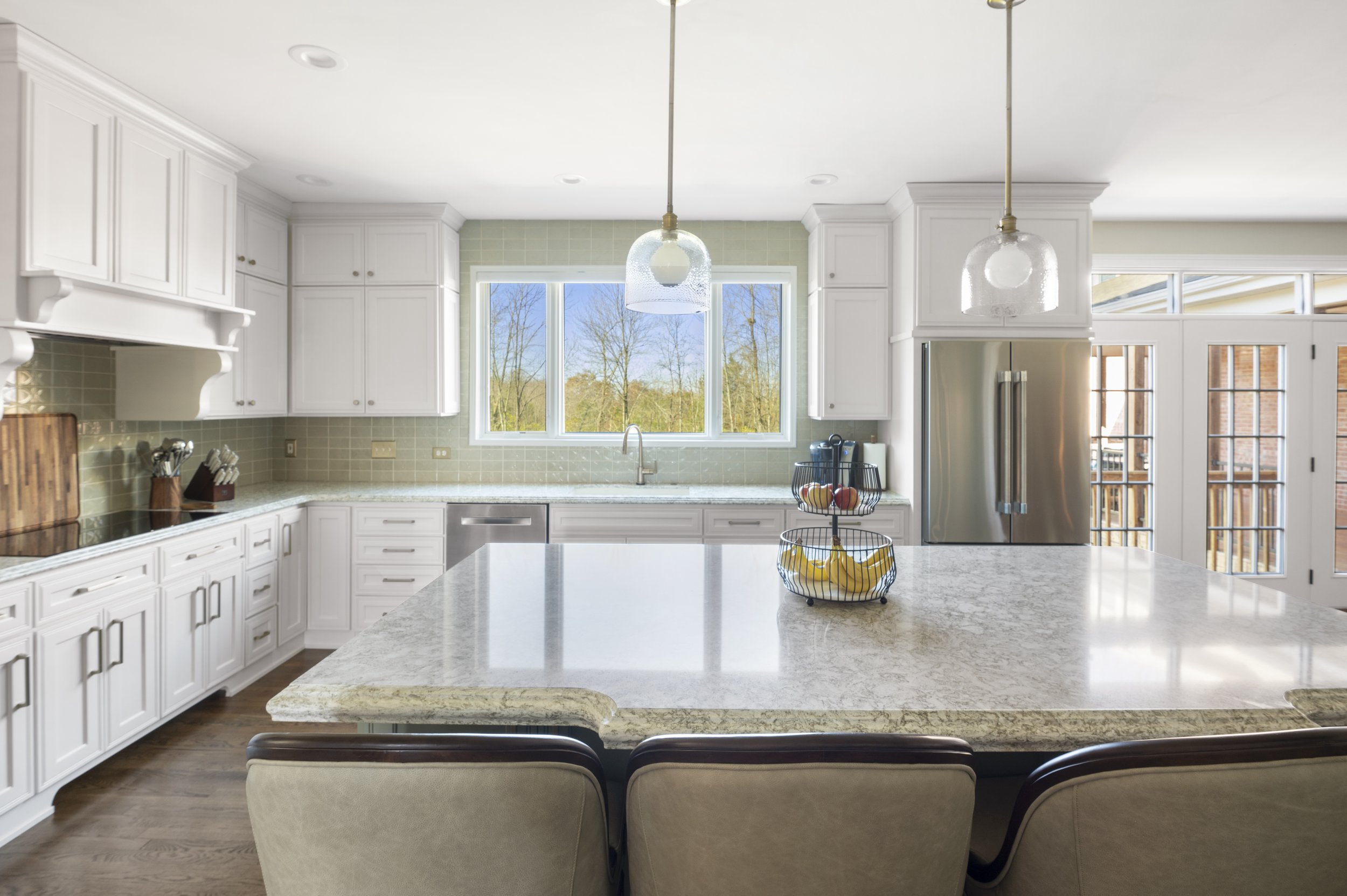 Before the new owners moved in, they hired New Leaf Home Repair and Remodeling to renovate their kitchen. New Leaf transformed the space into a stylish, functional area with an open-concept layout. The project included enlarging the window over the sink, which was previously positioned on an awkward island, and relocating the range to a different wall while upgrading to an induction cooktop.